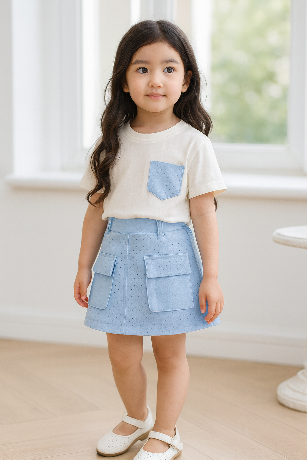 Amber Pocket Denim Skirt Set - Pastel Blue