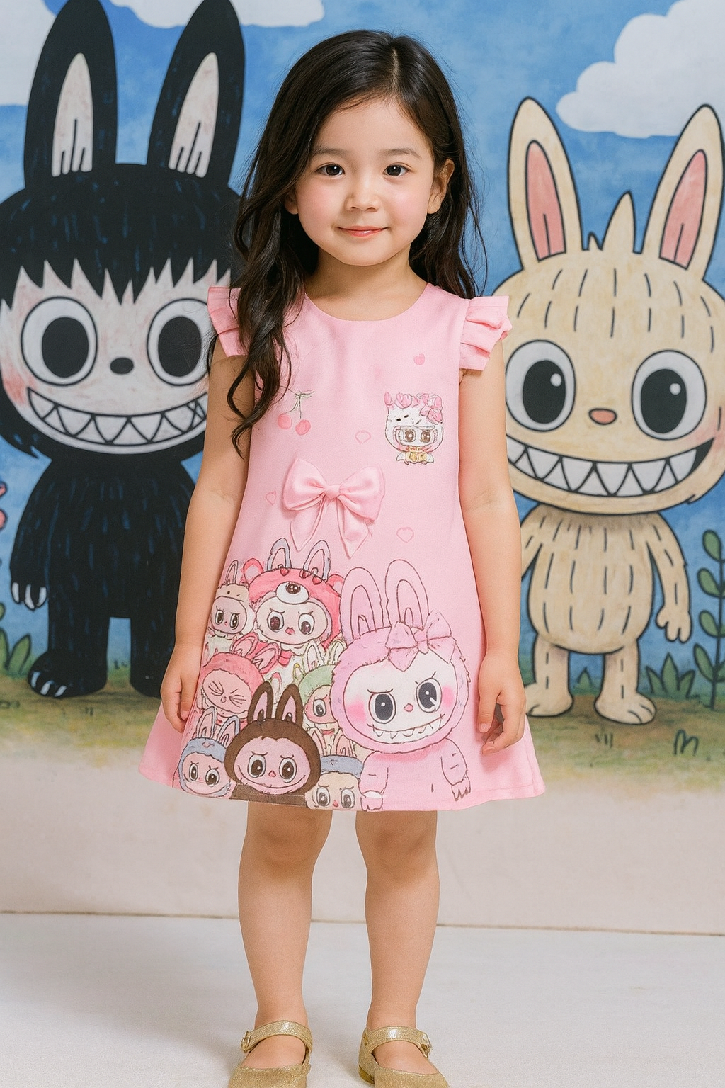 The Labubu Pink Character Dress is a sweet, playful piece made for little girls who love charm, color, and character-themed fashion.